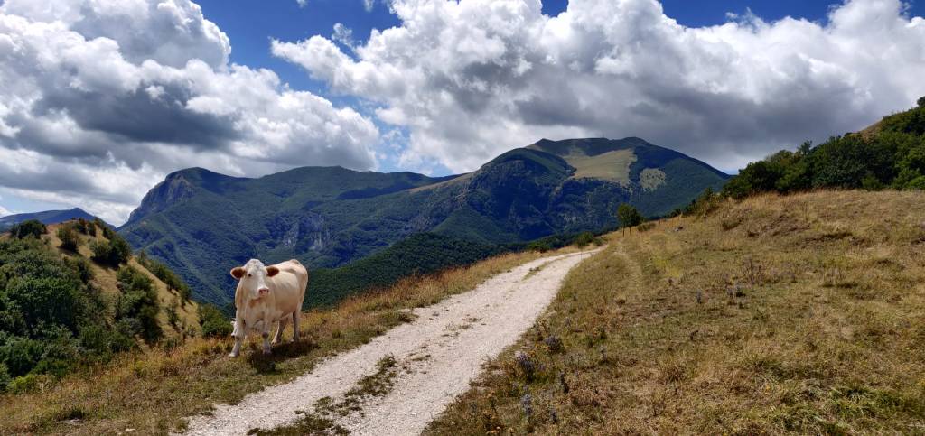 Il quarto percorso ci condurrà di nuovo a Serra Sant’Abbondio dove, nel centro storico, potremo salutarci e degustare le carni della razza bovina marchigiana che pascola sui nostri monti