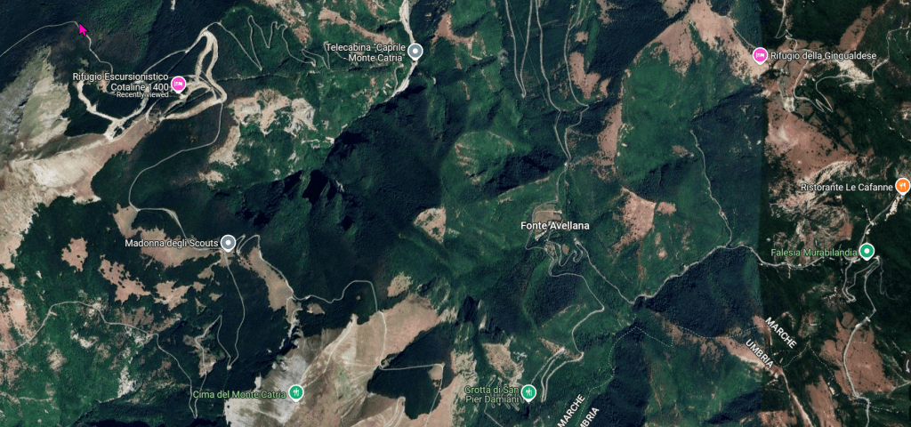Per ammirare questo fenomeno partiremo dal Rifugio “Cupa delle Cotaline”, oltrepassando le due imponenti faggete si giungerà presso il prato sommitale in cui sarà possibile entusiasmarsi alla vista dei cavalli del Catria, da lì si raggiunge con facilità la caratteristica Chiesetta di San Pier Damiani, viatico naturale che conduce ad un singolare affioramento geologico di rosso ammonitico nei pressi dell’Infilatoio.
